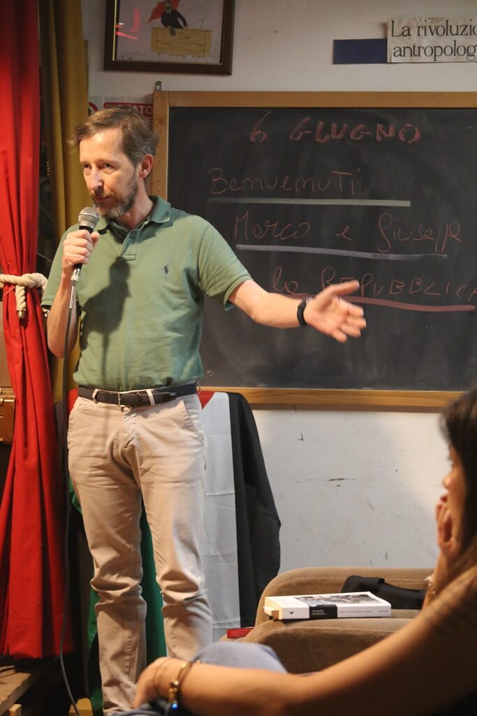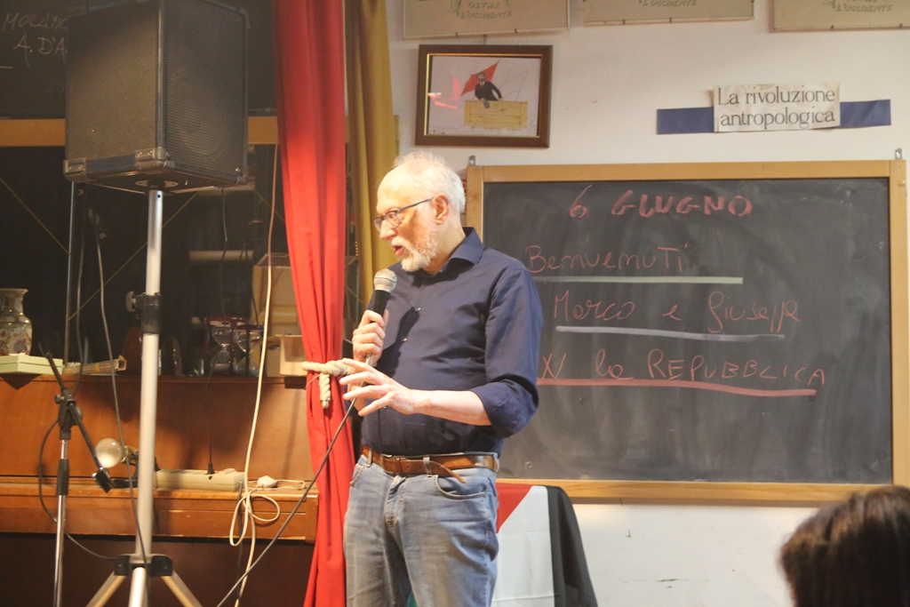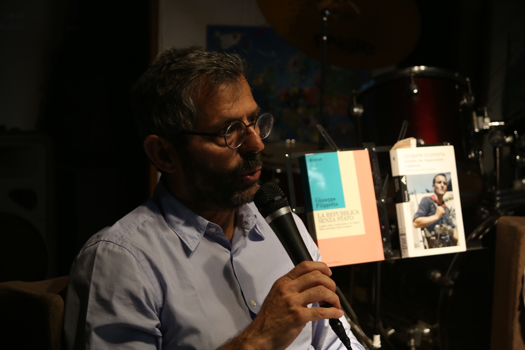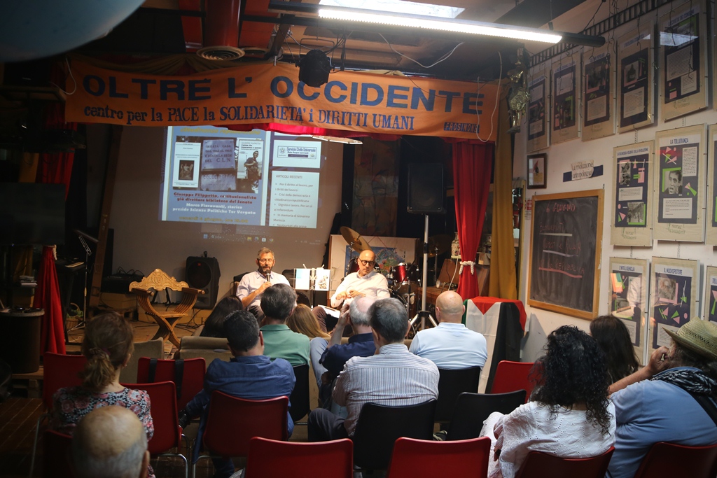 Doppio motivo quindi per invitarlo e avere un confronto, anche alla luce delle illuminanti posizioni in merito alla nascita della Costituzione italiana – L’estate che imparammo a sparare. Storia partigiana della Costituzione (2018), Feltrinelli – e alle considerazioni riguardo lo Stato postfascista, che, invece che farsi repubblicano attuando la Costituzione del 1947, la manda in esilio.