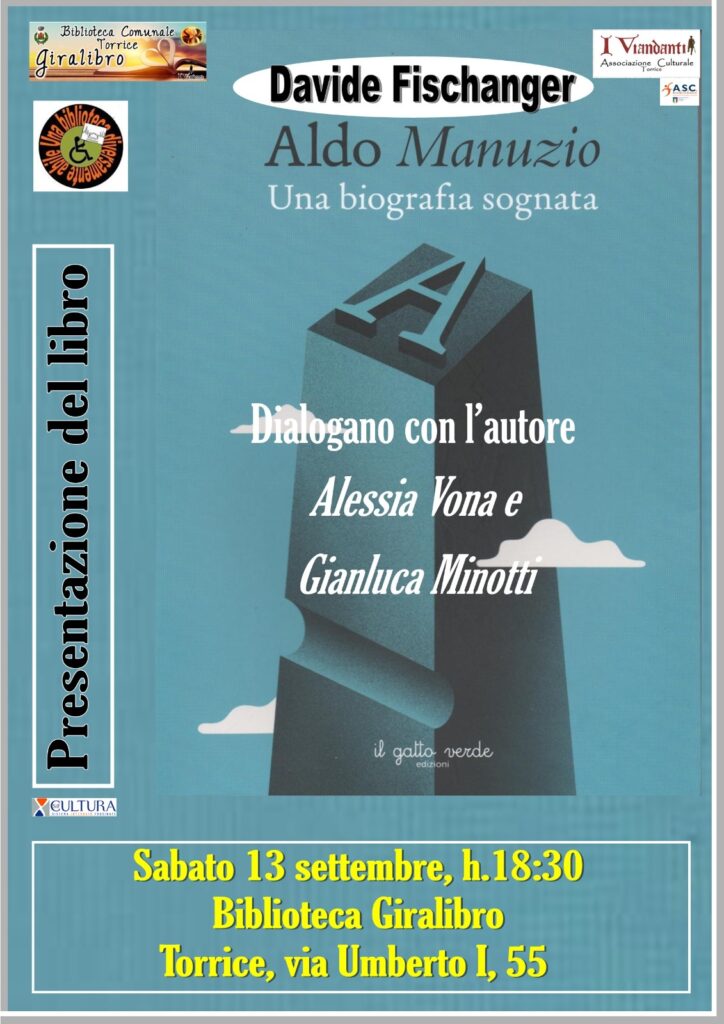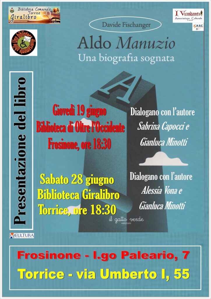 E’ rinviato al 13 settembre a Torrice, presso la biblioteca Giralibro, alle 18.30, la presentazione del bellissimo lavoro “Aldo Manunzio, una biografia sognata” scritto da Davide Fischanger.